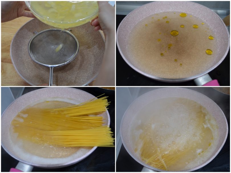 Versate l'acqua in padella e portatela ad ebollizione con un filo d'olio e un po' di sale.