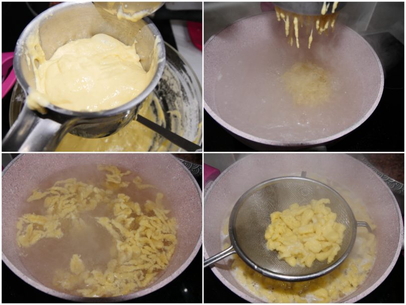 Quando gli spätzle saliranno a galla, scolateli con una schiumarola.