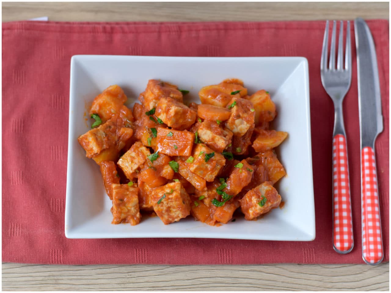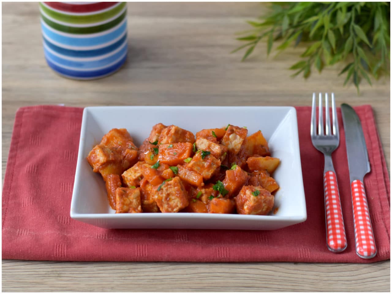 Lo spezzatino di tempeh è pronto, non vi resta che servirlo.