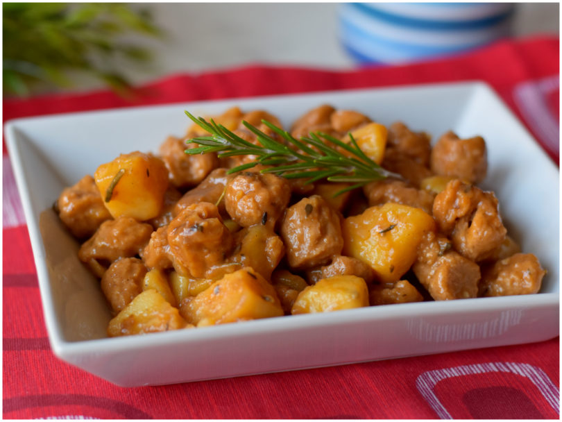 Un comfort food caldo, avvolgente e ricco di sapore: questo spezzatino veg con le patate ricorda i profumi della cucina della nonna, ma è 100% vegetale! Lo so, lo so, uno spezzatino vegetale va contro tutte le tradizioni della nonna... ma vi assicuro che è buonissimo e fa contenti il palato, il colesterolo e anche il pianeta! Almeno provatelo, prima di giudicare!