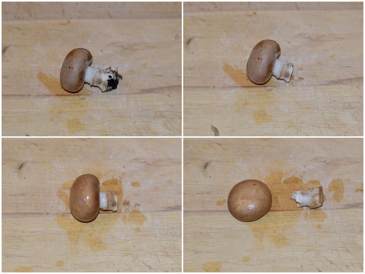 Mondate anche gli champignon e separate i gambi dalle teste.