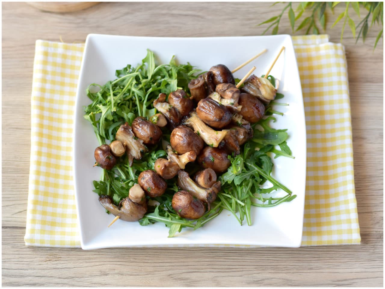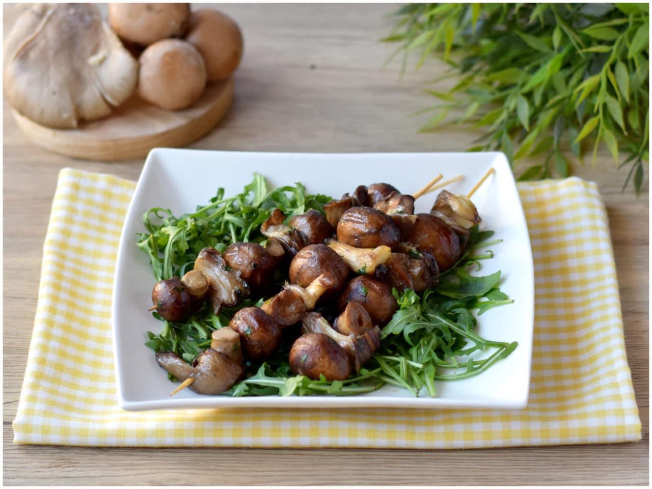Gli spiedini di funghi sono pronti, serviteli subito.