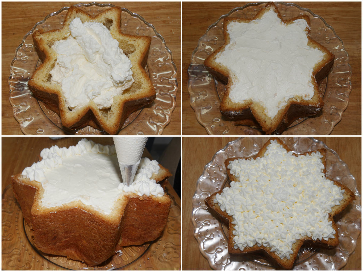 Aiutandovi con una sac-à-poche, farcite il pandoro con la crema, cercando di riempire bene anche gli angoli della stella, quindi lasciatelo riposare in frigo per almeno 2 ore.