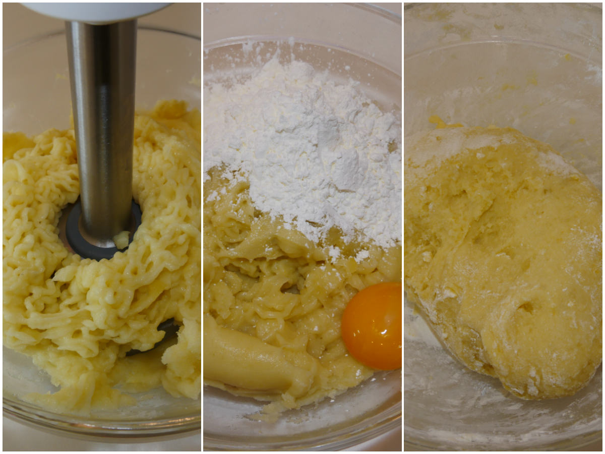 Passate le patate nello schiacciapatate, quindi aggiungete sale, tuorlo e maizena e impastate velocemente, giusto il tempo di incorporare gli ingredienti.