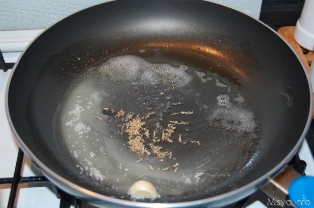 Fate rosolare uno spicchio d'aglio in un'ampia padella con il burro ed unire il tartufo grattugiato.
