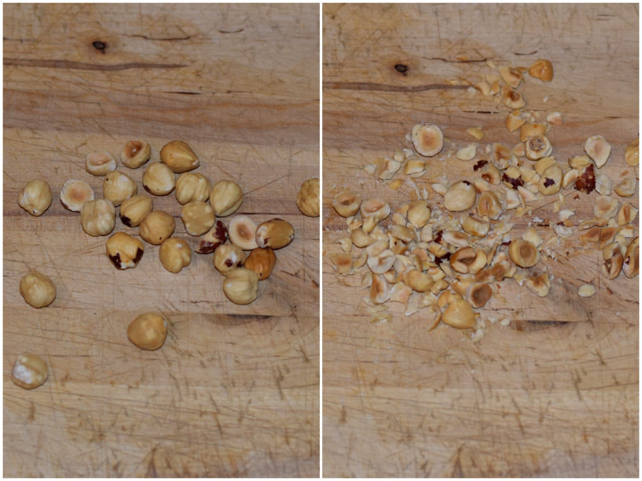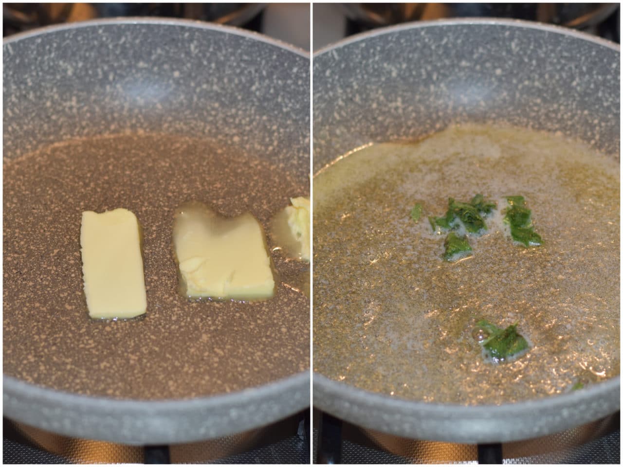 Se volete condirle seguendo il mio suggerimento, mettete a bollire l'acqua per la pasta, e nel frattempo preparate il condimento: dopo averle tritate grossolanamente, fate tostare leggermente le nocciole in una padella antiaderente, quindi mettetele da parte e, nella stessa padella, lasciate sciogliere il burro con la salvia spezzettata.