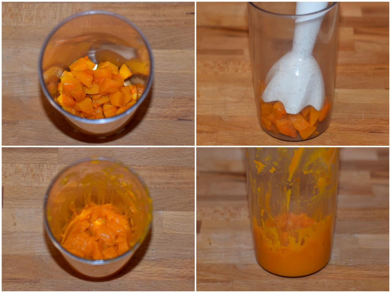 Frullate la zucca con un minipimer o in un mixer fino ad ottenere una purea.