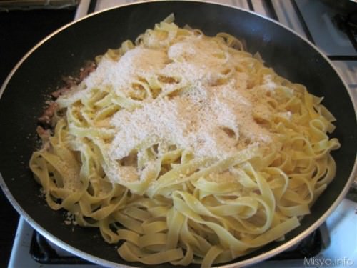 Aggiungete il parmigiano e fate saltare le tagliatelle per un paio di minuti ancora