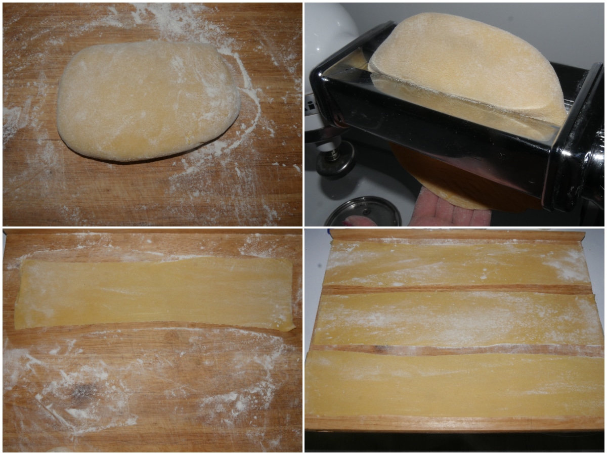 Riprendete il panetto, dividetelo in 3-4 pezzi e iniziate a stenderlo con la macchina tirasfoglia, partendo dallo spessore maggiore fino ad arrivare a quello più sottile.