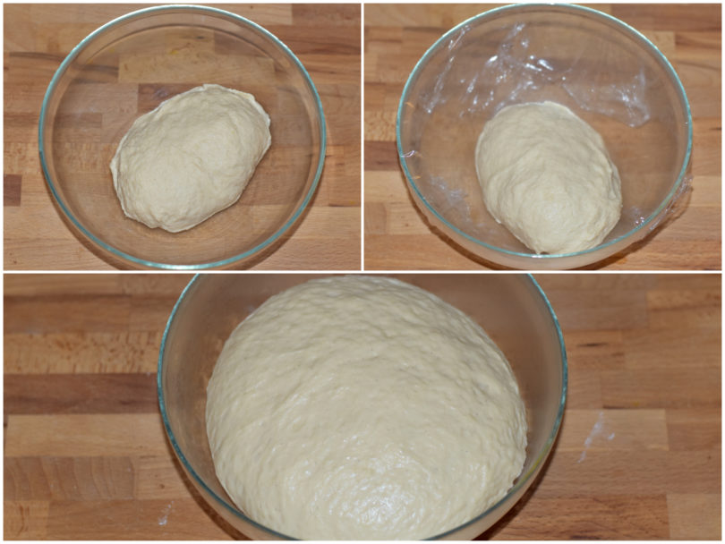 Coprite la ciotola con pellicola per alimenti e lasciate lievitare in un posto caldo per 3-4 ore o fino al raddoppio.