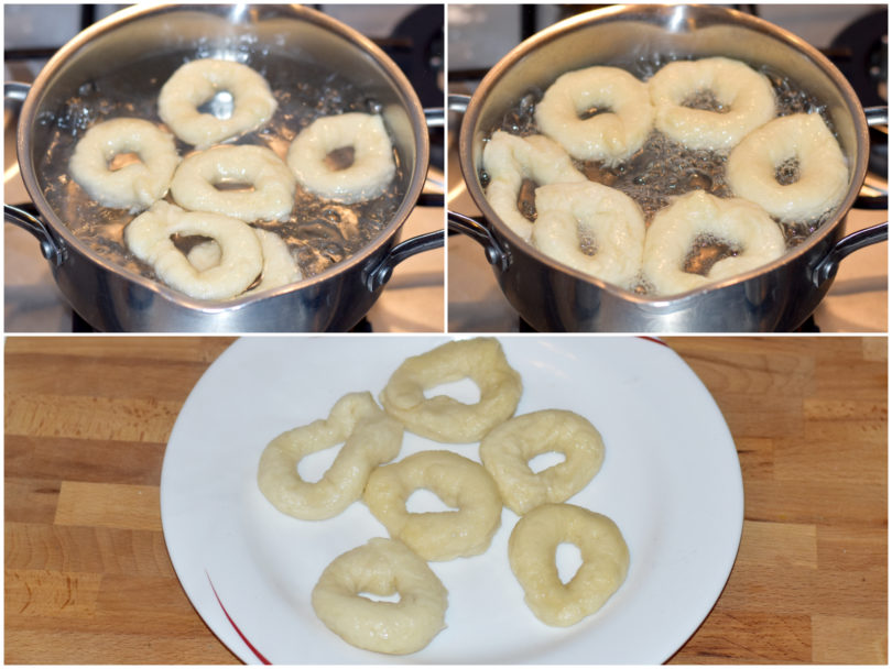 Scaldate dell'acqua in una pentola capiente e portate a ebollizione, quindi cuoceteli pochi per volta finché non torneranno a galla, poi scolateli e lasciateli asciugare su di un canovaccio pulito.