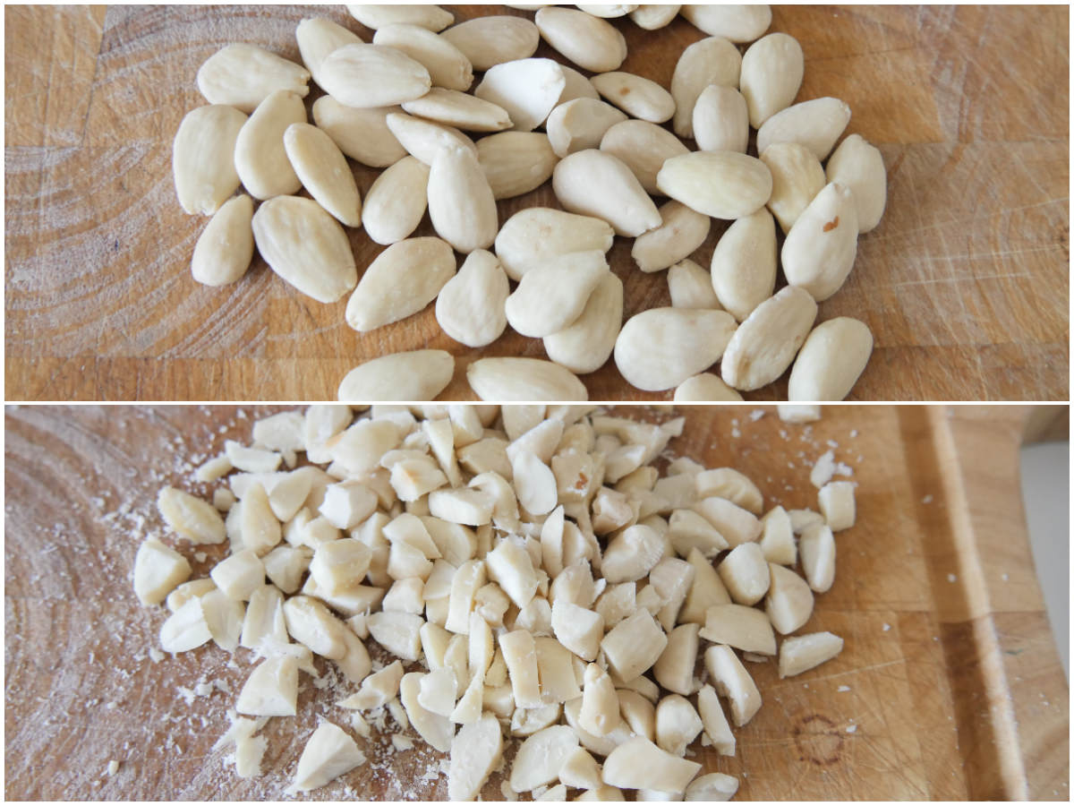 Innanzitutto tritate le mandorle grossolanamente.