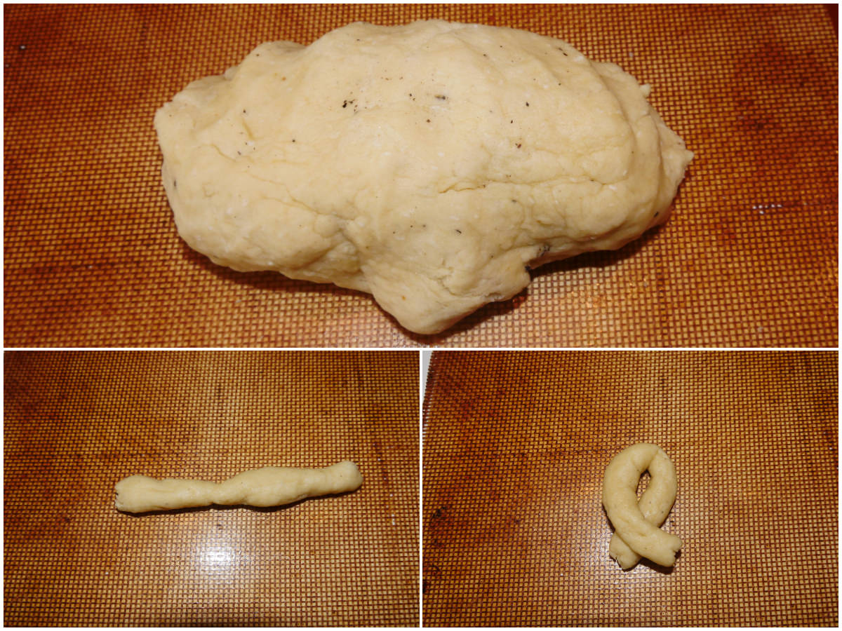 Riprendete l'impasto e iniziate a ricavare dei cordoncini spessi circa 1 cm e lunghi 8-10 cm.