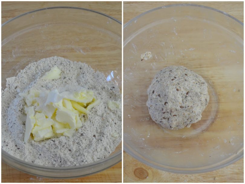 In una ciotola disponete la farina a fontana con al centro il burro a pezzetti e il sale.