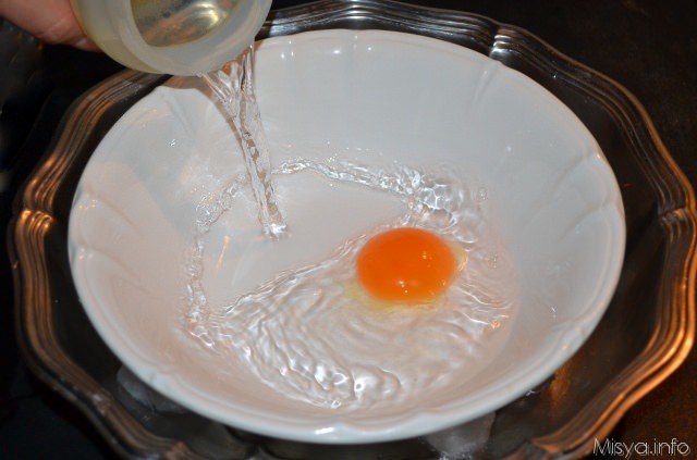 Mescolate il tuorlo con l'acqua fredda di frigo.