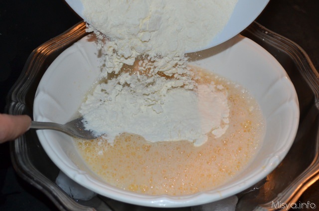 Aggiungete la farina ed una presa di sale e mescolare, ma non troppo, la pastella NON deve essere liscia.