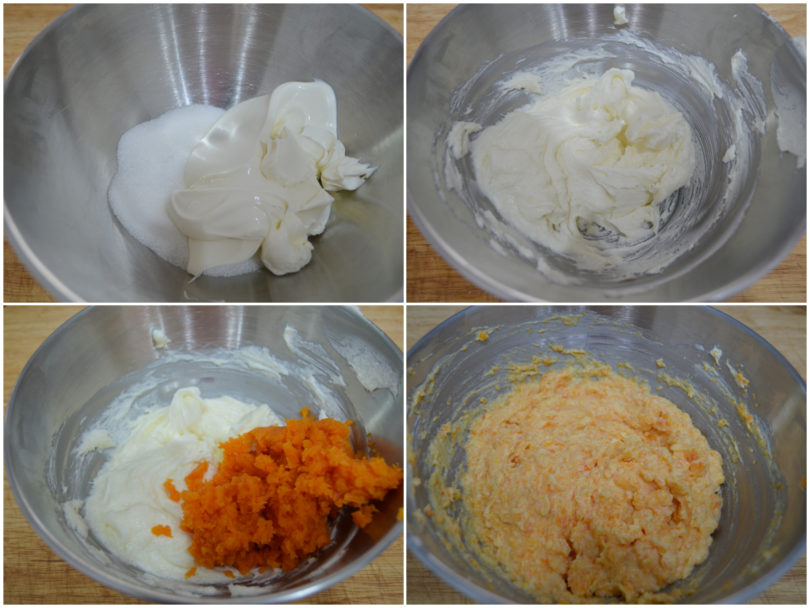 Una volta fredde, aggiungete le carote alla crema, sempre continuando a montare.