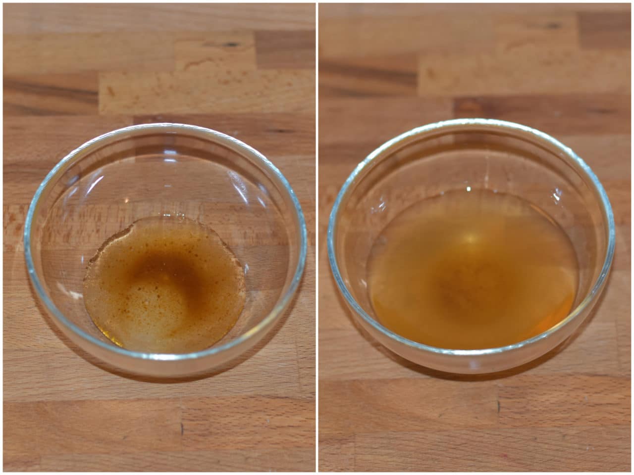 A parte, unite in una ciotolina aceto, dado, acqua e miele e mescolate per far sciogliere e amalgamare.