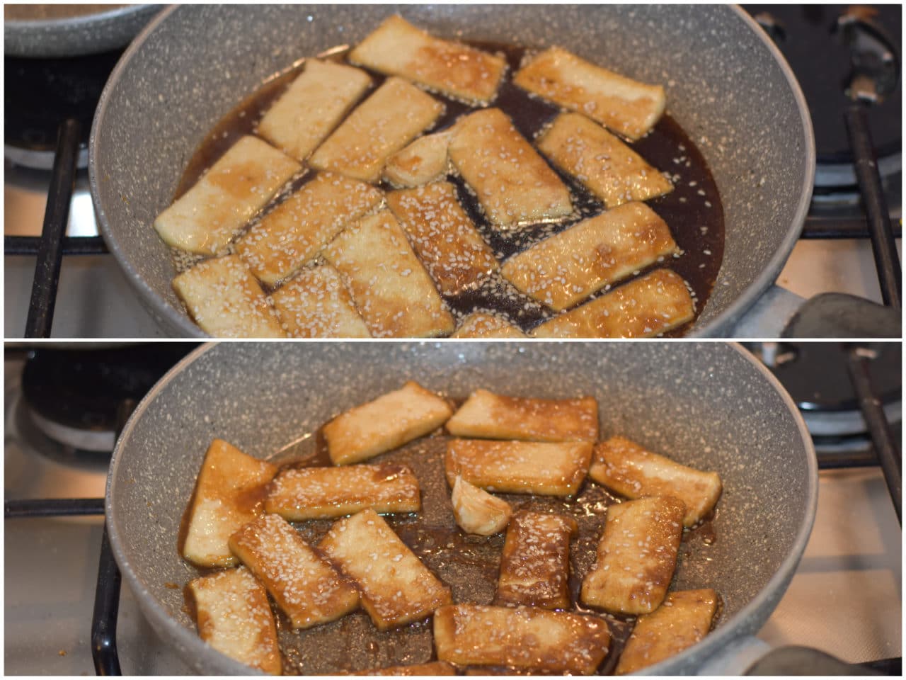 Sfumate il tofu con questa salsina, lasciando poi glassare per bene il tofu.