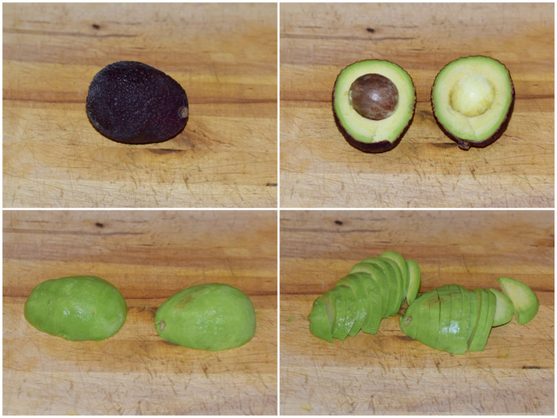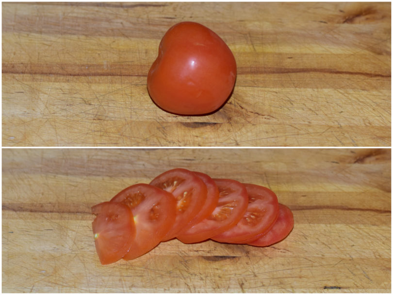 Nel frattempo lavate il pomodoro, mondate l'avocado e tagliate entrambi a fette.