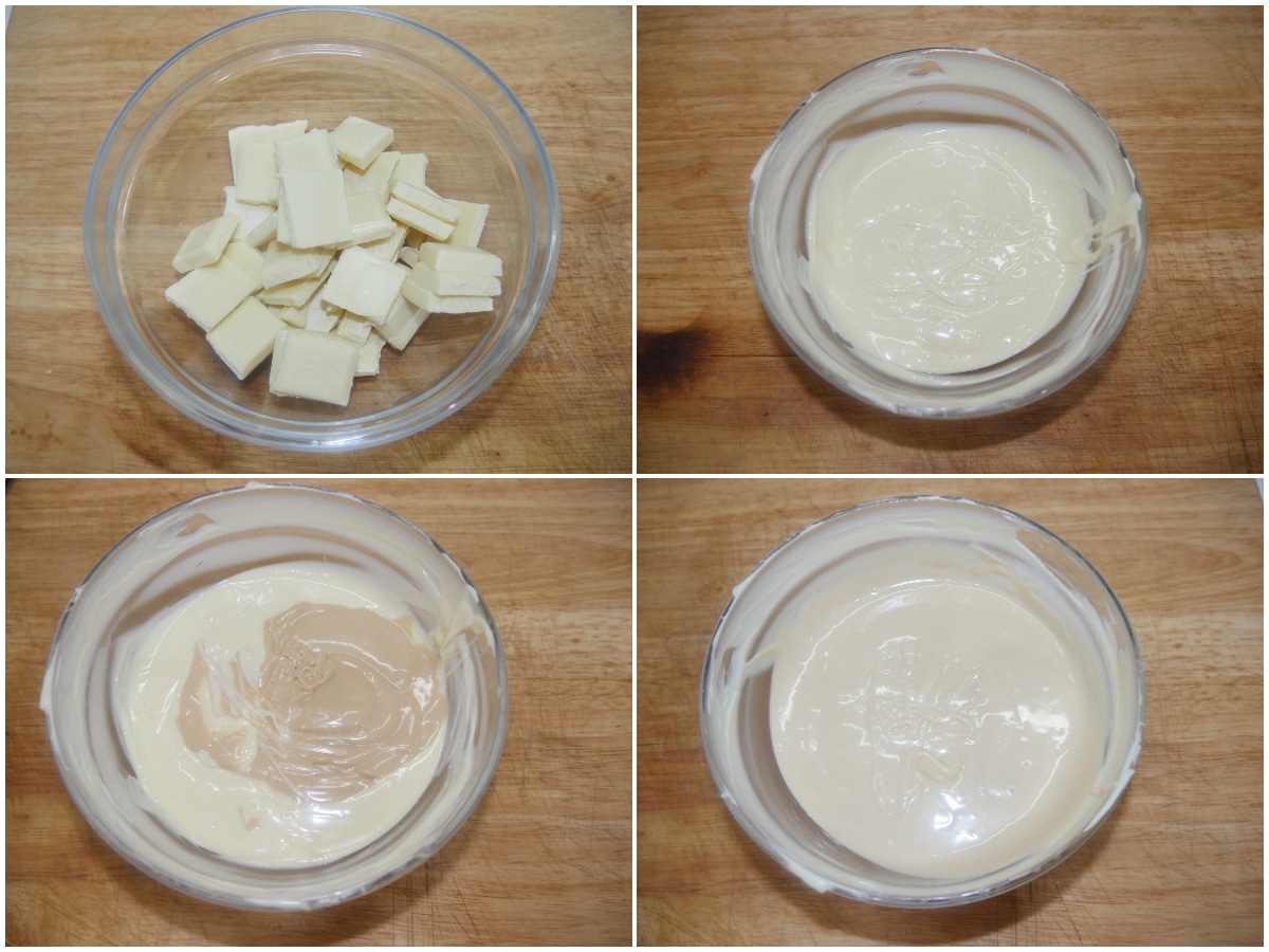 Sciogliete il cioccolato bianco e incorporatevi la crema alba.