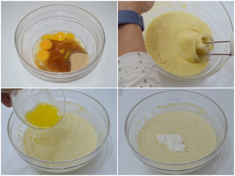 Lavorate tra loro uova e zucchero per almeno 10 minuti, fino ad ottenere un composto gonfio e spumoso.