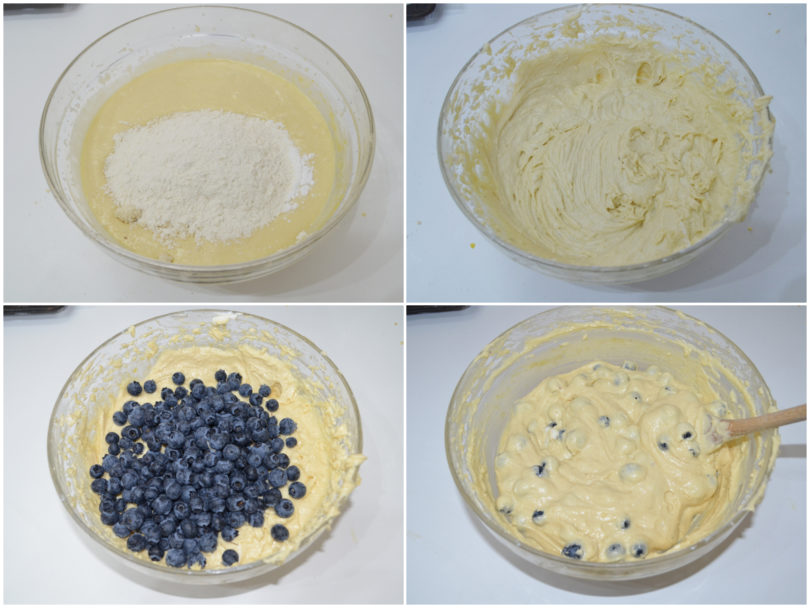 Infine aggiungete i mirtilli interi, lavati e asciugati, mescolando delicatamente con una spatola in modo che non si rompano.
