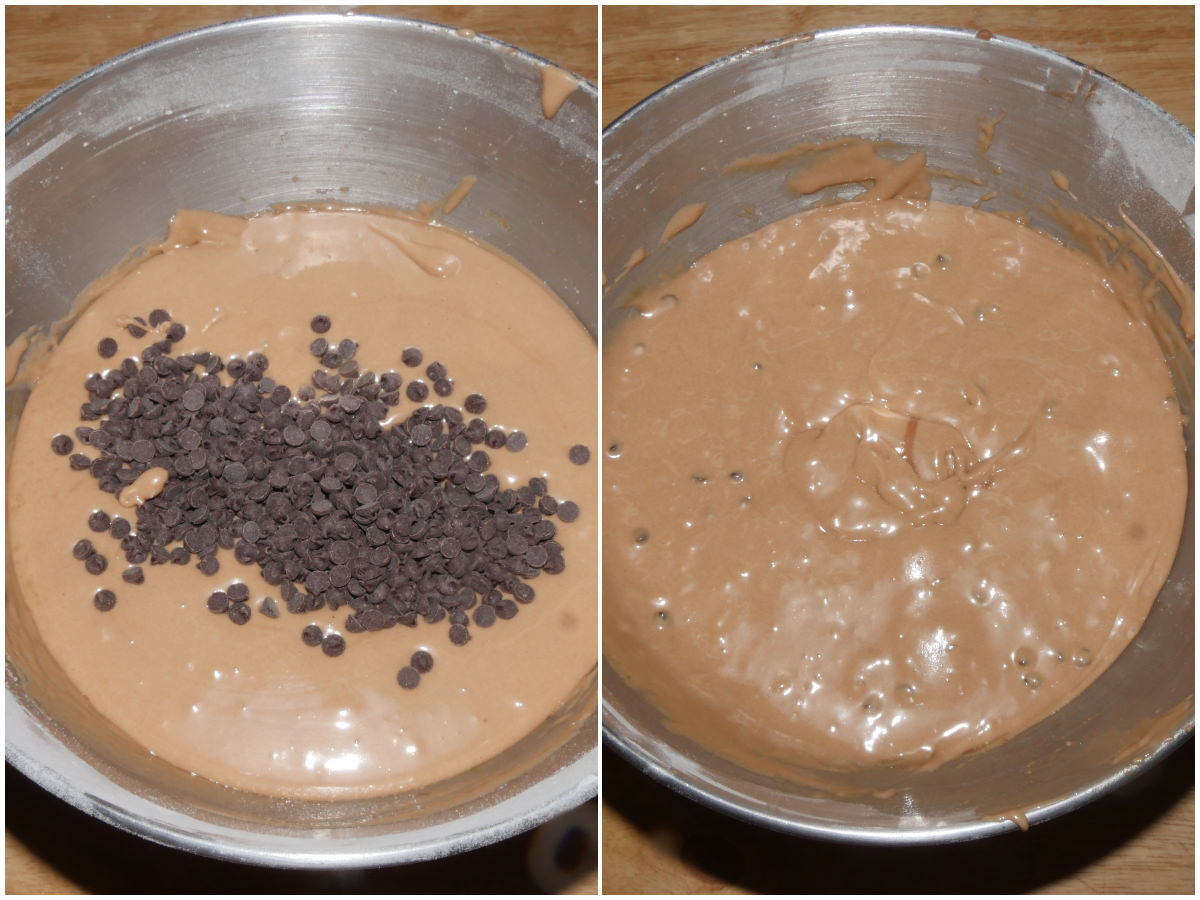 Infine incorporate le gocce di cioccolato (o il cioccolato fondente spezzettato grossolanamente).