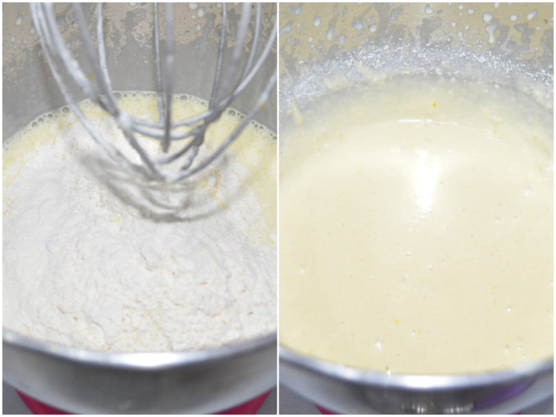 Incorporate anche farina e lievito setacciati, e in ultimo unite anhce la farina di cocco e il sale.