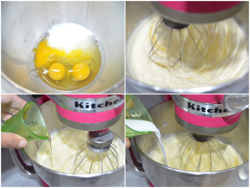 Quindi aggiungete, a filo mentre continuate a montare, prima l'olio e poi il latte di cocco.