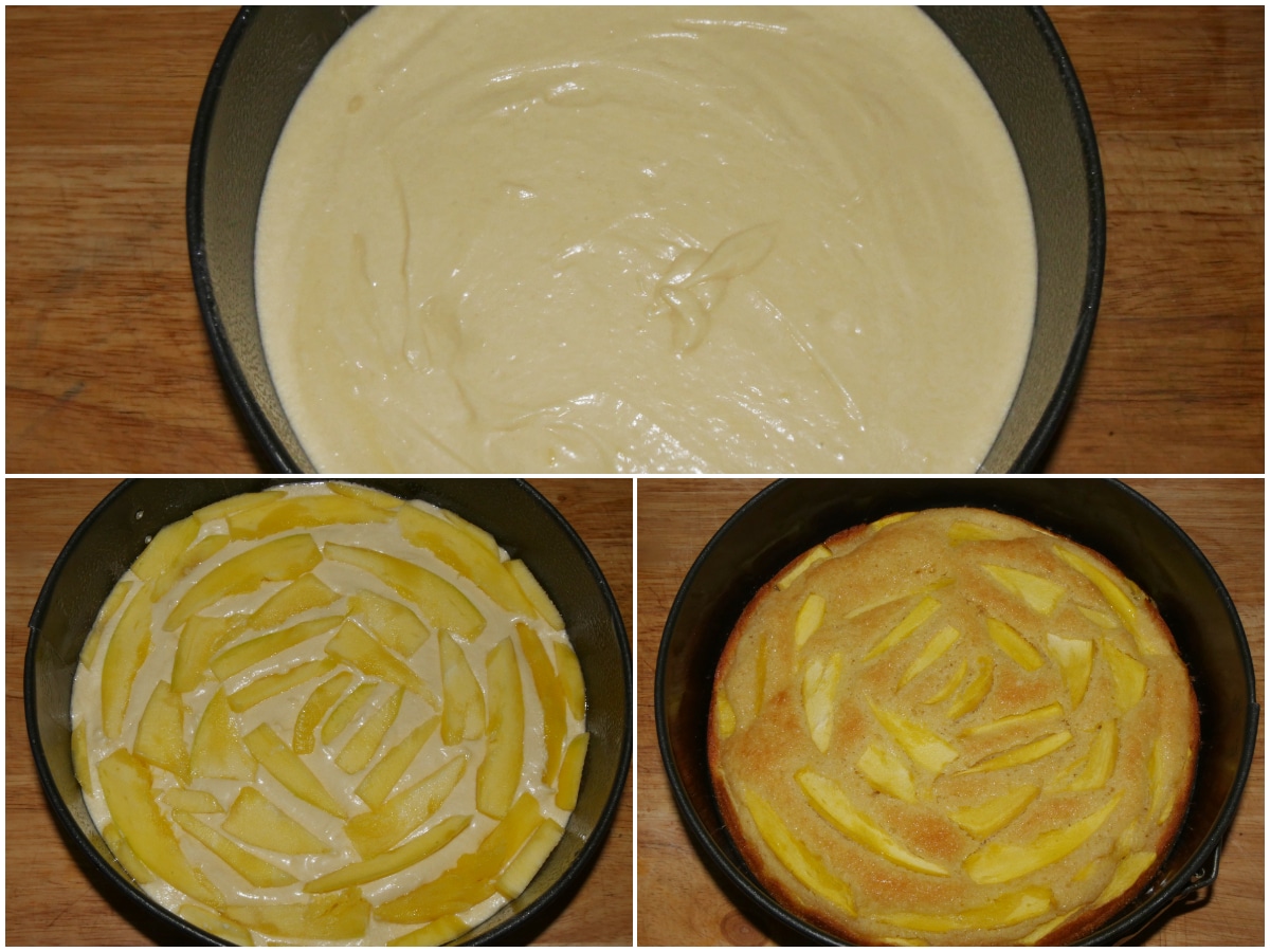 Versate il composto nello stampo imburrato e infarinato, disponete sulla superficie le fettine di mango e cuocete a 180°C per circa 30 minuti, in forno ventilato già caldo.