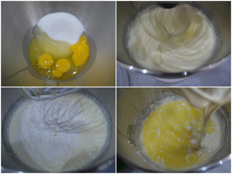 Incorporate farina e lievito setacciati e poi anche il burro fuso intiepidito.