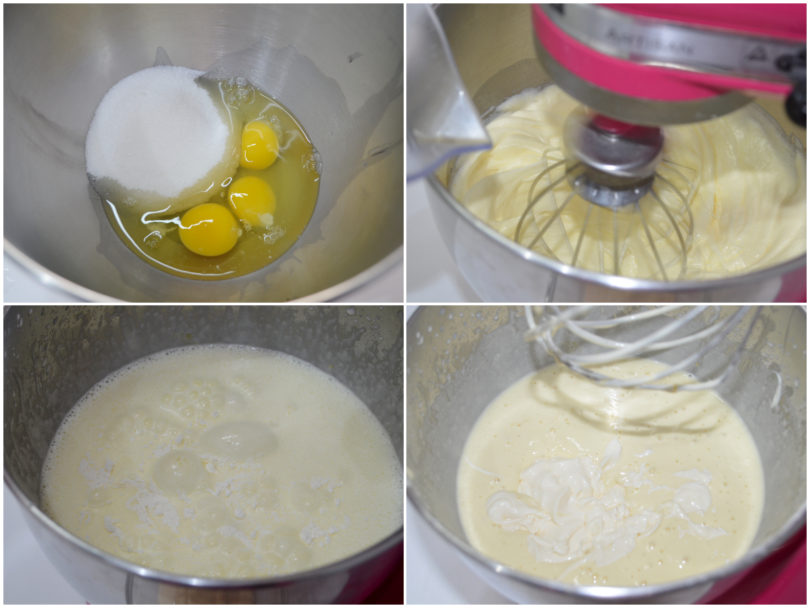 In una ciotola ampia, montate le uova con lo zucchero per almeno 10 minuti: dovranno triplicare di volume.