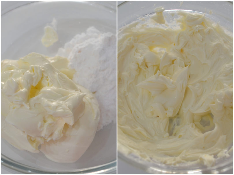 Nel frattempo preparate il frosting, lavorando con le fruste il formaggio Philadelphia con lo zucchero a velo.