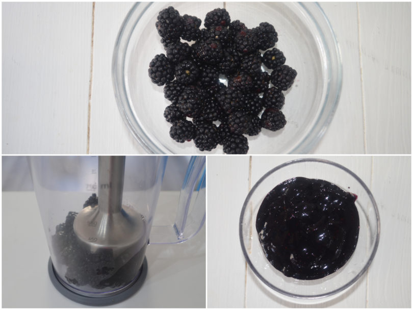 Innanzitutto frullate le more, dopo averne messa qualcuna da parte per la decorazione.