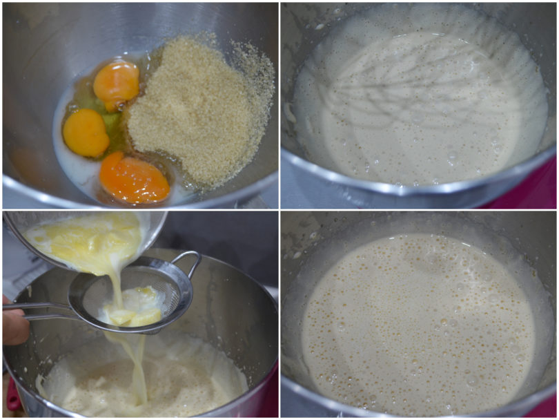 Montate le uova con lo zucchero di canna fino a renderle spumose.
