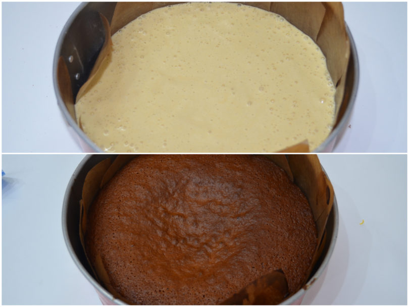 Versate l'impasto in uno stampo a cerniera imburrato ed infarinato, infornate a 175°C in forno statico già caldo e cuocete per circa 30 minuti.