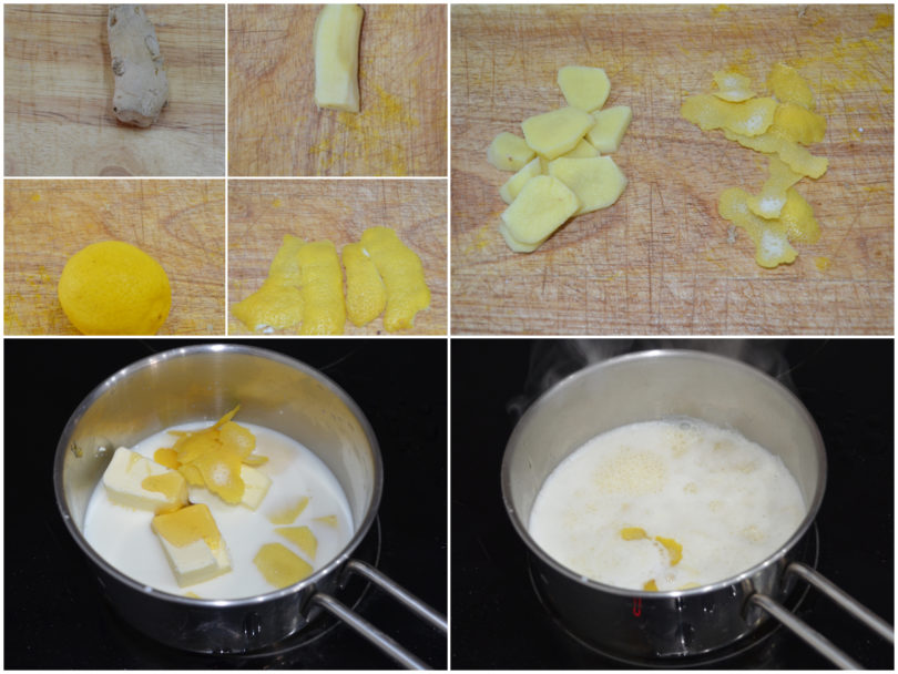 Quindi scaldate il latte con burro, zenzero, limone e miele: portate a bollore e fate cuocere per 5 minuti.