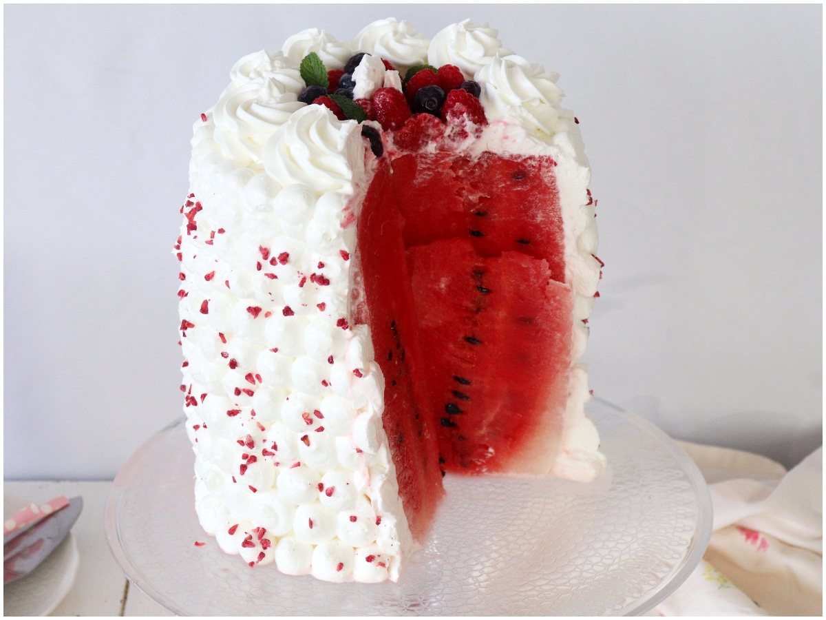 Tutto qua: la torta anguria è pronta e non vi resta che servirla.