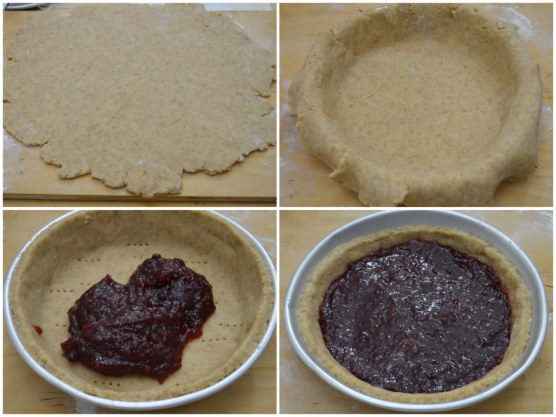 Bucherellate la base con i rebbi di una forchetta, poi aggiungete la confettura di lamponi.