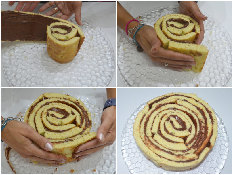 Prendete una seconda striscia, cospargete anche questa di nutella e arrotolatela intorno alla prima.
