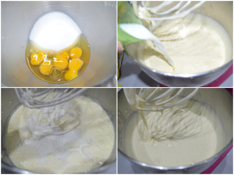 Aggiungete latte e vaniglia a filo continuando a montare, quindi incorporate anche farina e lievito setacciati, poco per volta.