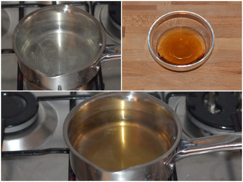 Preparate la bagna: portate a ebollizione l'acqua con lo zucchero, poi aggiungete il rum e lasciate raffreddare.