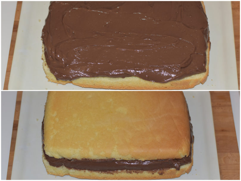 Aggiungete la crema, chiudete con la parte superiore e bagnate anche questa.