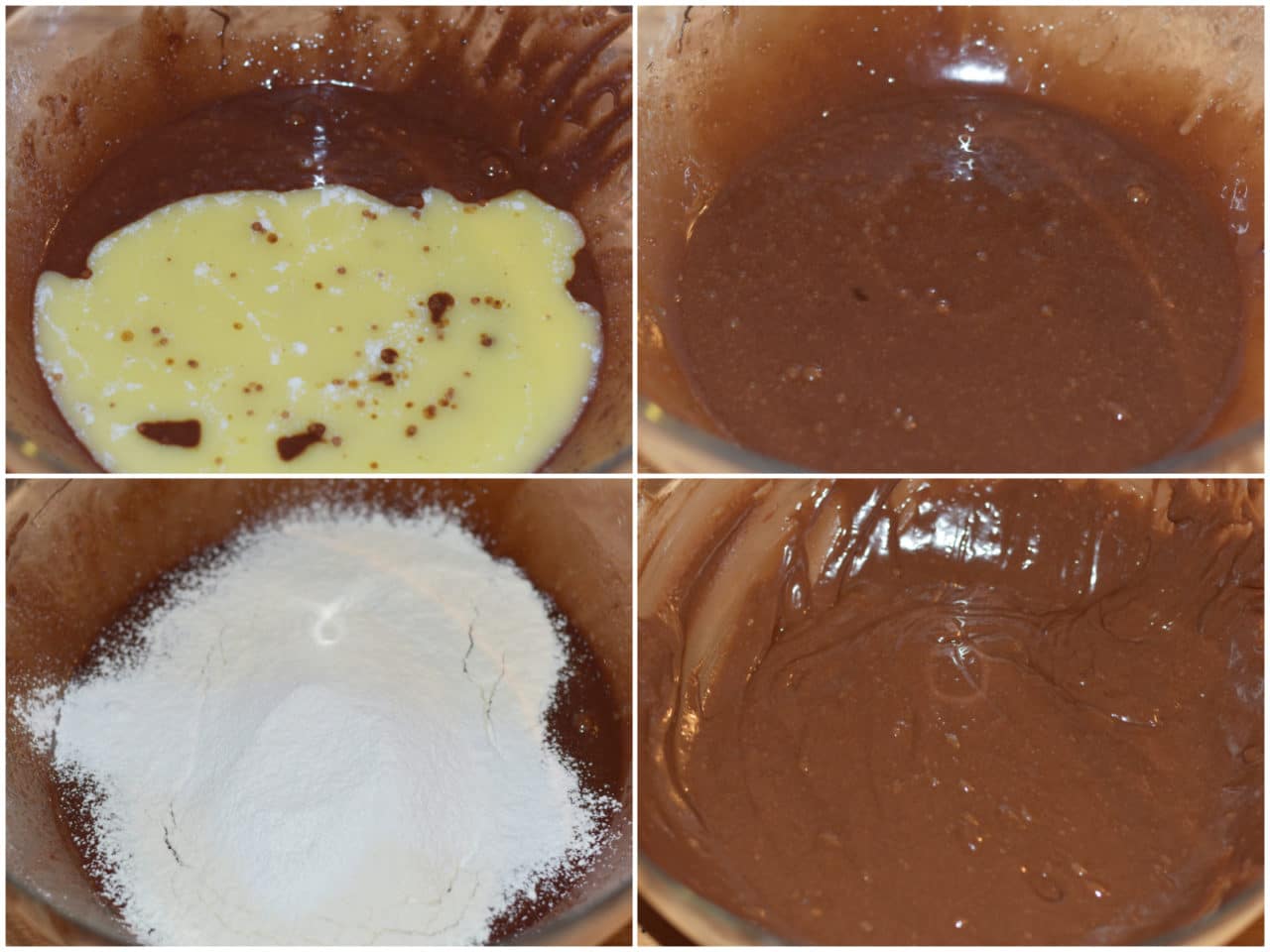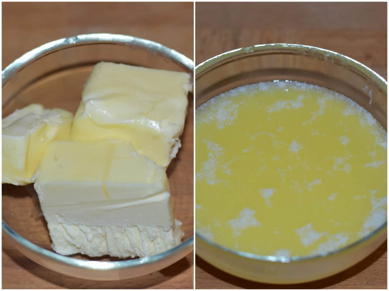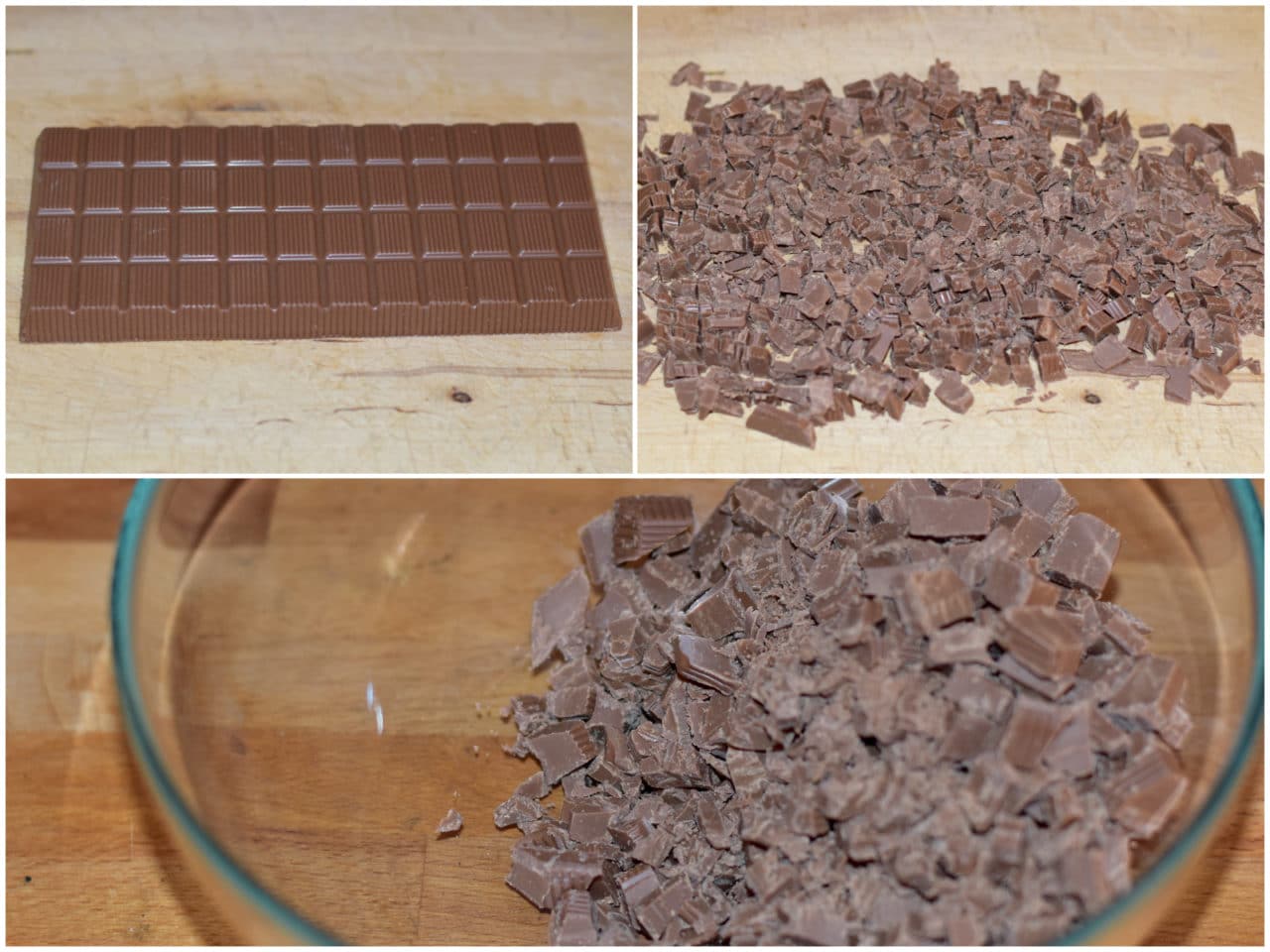 Innanzitutto preparate la base: sciogliete il cioccolato fondente a pezzetti, in microonde o a bagnomaria, quindi lasciatelo intiepidire e intanto sciogliete anche il burro.