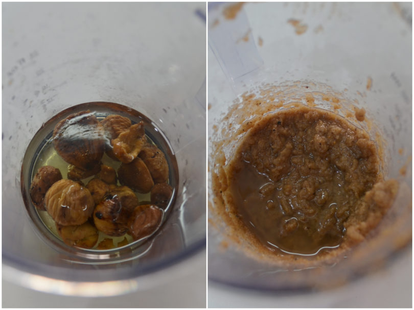 Frullate i vostri 100 g di castagne insieme all'olio fino ad ottenere una crema densa e liscia.