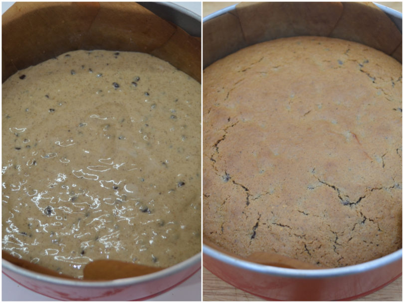 Versate il composto nello stampo rivestito di carta forno e cuocete per circa 40 minuti a 180°C in forno ventilato già caldo.