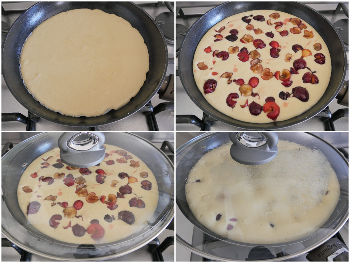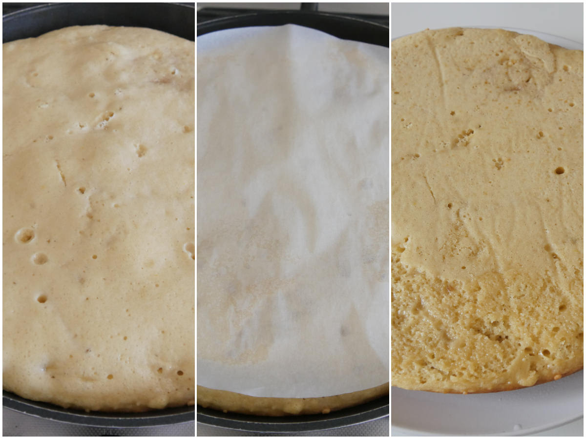 Una volta trascorso il tempo di cottura (fate la prova stecchino: il dolce dovrebbe risultare quasi completamente cotto), con un po' di cautela girate la torta (potete aiutarvi con un piatto, un coperchio o un paio di spatole) e fate cuocere anche il secondo lato per 5-6 minuti.
