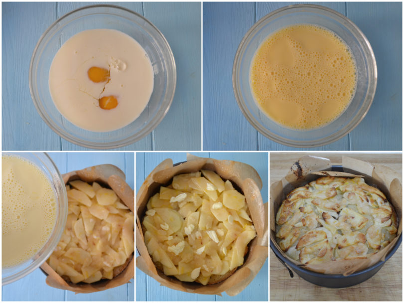 Sbattete uova e latte in una ciotola e versatele sul dolce in maniera uniforme.