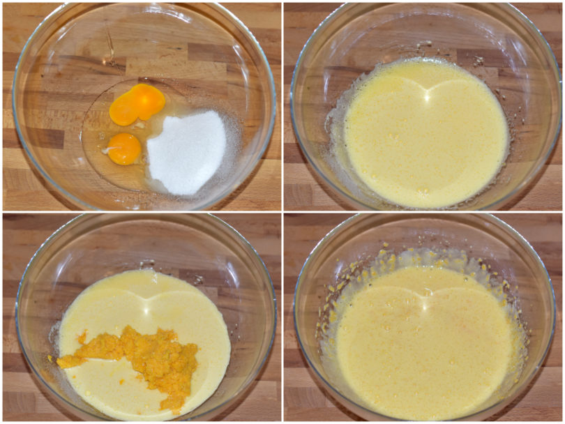Montate le uova con lo zucchero fino a renderle ben spumose, poi incorporate la zucca.
